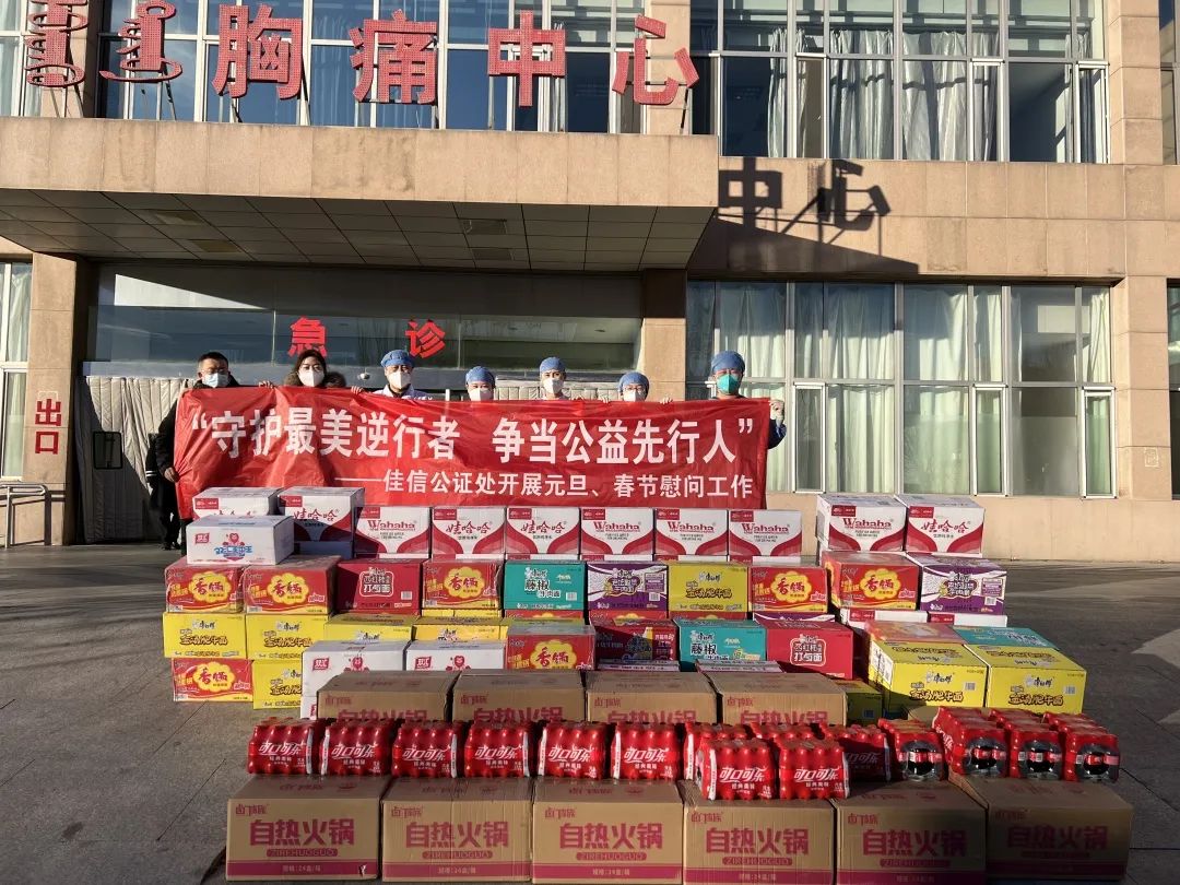 12月28日下午,佳信公證處郝鳳霞主任一行為我院東勝部急診科一線醫(yī)務人員送來方便食品,助力疫情防控工作。